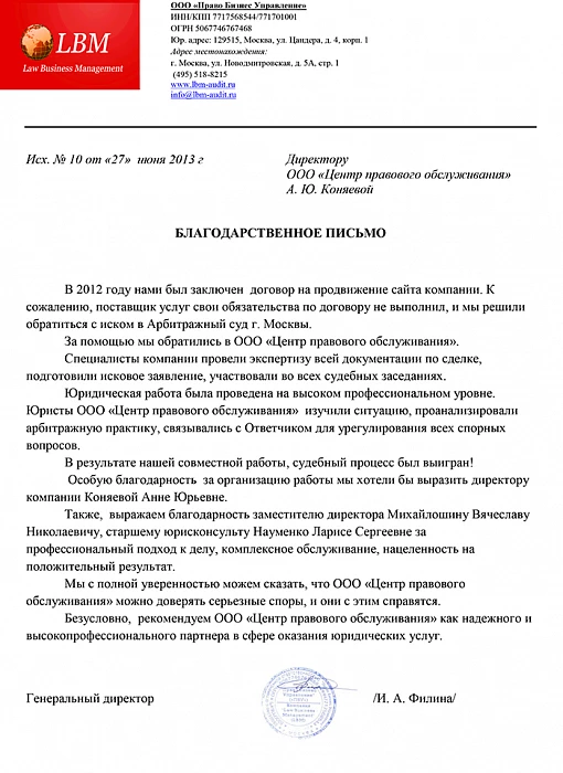 За 26 лет работы мы получили 400+ отзывов и рекомендаций. Вот некоторые из благодарностей клиентов, которые обращались за разрешением споров